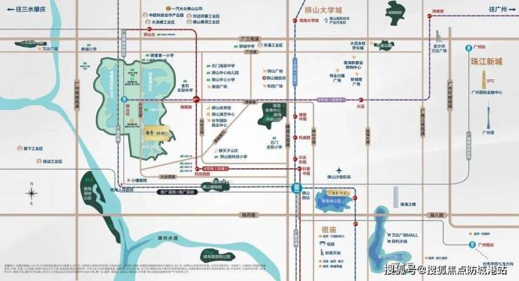 佛山西站: 距离约6公里,高铁到广州南站仅约20分钟,轻松融入大湾区1小时生活圈。