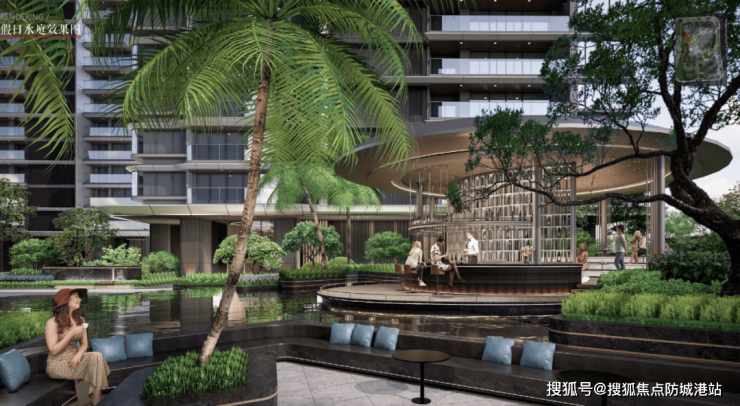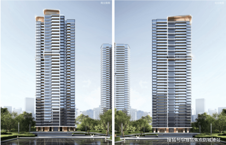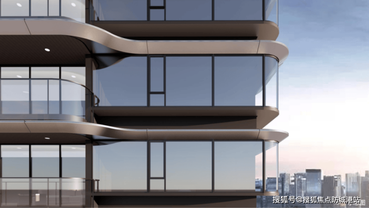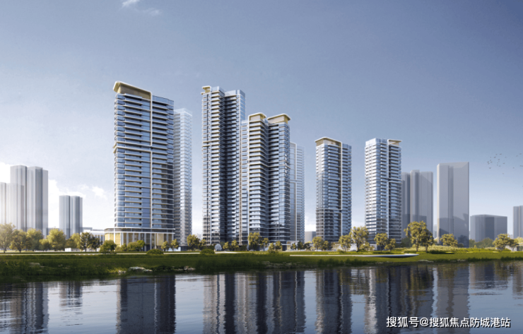 建筑外立面用了钻感玻璃幕墙搭配阳极氧化铝板,香槟金与高级银的线条勾勒出横向舒展的轮廓,远看像江面泛起的波纹。最打动我的是0.36的窗地比——这比行业常规的0.25高出不少,意味着白天几乎不用开灯,自然光就能铺满整个客厅。塔冠做了30°斜角设计,悄悄融入了岭南传统挑檐的意象,既现代又不突兀,站在假日水庭回望楼体,真有点“滨水地标”的味道。
