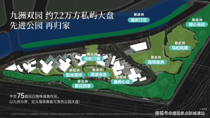 社区整体规划:公园式布局,生态宜居:项目秉持“公园九洲”设计理念,营造“先进公园,再归家”的生态居住氛围,整体规划结合地块地形,采用一字排开的楼栋布局,前后无遮挡,确保每户都能享有充足的采光与通风。社区南面和东面规划九洲双园,搭配小区内七大运动主题大花园,总景观面积达7.2万㎡,在海珠同板块楼盘中极具优势。