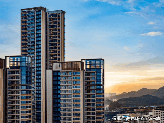 目前项目阅海、观澄、中央公园三大组团均有房源在售,其中阅海组团已是现楼状态,看得见的建筑品质让购房者少了一份期房的担忧。外立面采用玻璃幕墙搭配铝质材料,这种常见于豪宅的配置,让建筑在阳光照射下透着高级感,8米高的玻璃幕墙塔冠灵动挺拔,香槟金与米黄色的百叶则增添了温润质感,远远望去就极具辨识度。