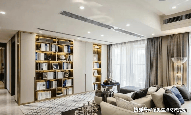 书房雅致静心:浅橡木书柜搭配隐藏储物,营造沉浸式阅读氛围。