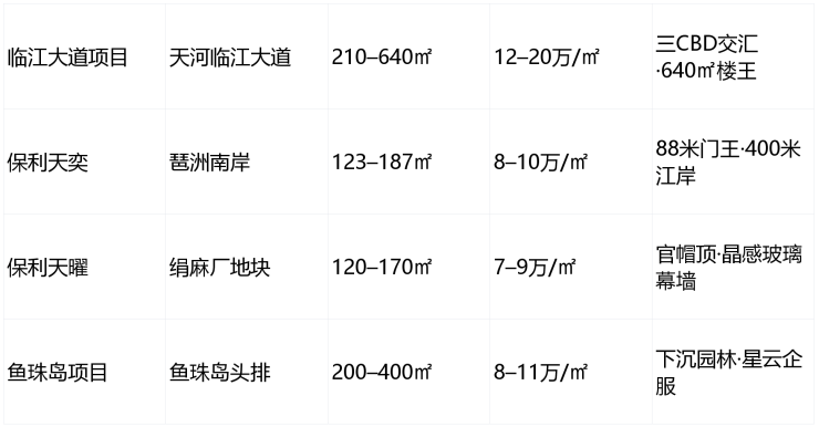 ✅ 临江大道项目(天河地王):210–640㎡一线珠江头排大平层,直面珠江新城+金融城+琶洲三CBD;