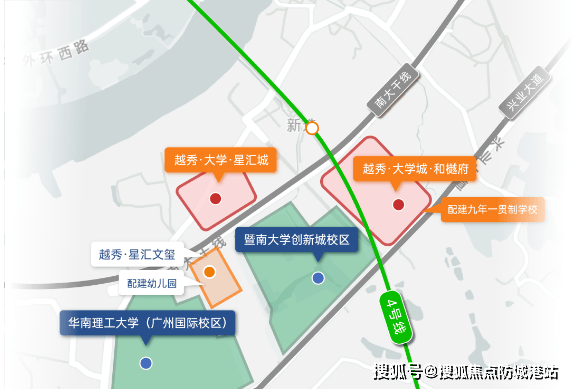 项目周边高校林立,华南理工大学国际校区、暨南大学番禺校区等众多高校落户于此,约 20 万师生聚集,形成浓厚学术氛围与高素质居住圈层。所在的大学城二期作为一期自然延伸,共享优质教育与科研资源。尽管当前新造板块产业相对薄弱,主要客群来自主城区 CBD 外溢,但随着片区开发推进与高校陆续交付,将吸引更多产业与人口,发展潜力巨大,未来生活氛围将愈发浓厚,居住价值也将不断提升。⭕越秀·大学·星汇城售楼处电话为4009908525转809☎☎开发商已认证🌶️🌶️