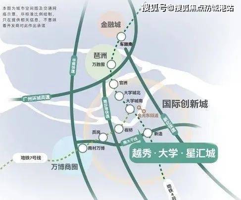 越秀大学星汇城就在国际创新城板块,靠近地铁4号线新造站,南面就是南大干线,金融城开车走新化快速路也很方便。