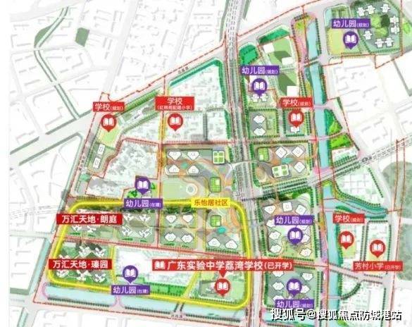 教育资源丰富。项目自身配备一所 54 班(小学 36 班,初中 18 班)的九年制省实验学校花地湾校区,内部打造约 4000 平的首层架空层及 50×23 米室内恒温泳池,业主子女可入读,2023 年 9 月已开学。整个万汇天地规划 7 所幼儿园、3 所小学、3 所中学。不过需注意,该省实验学校花地湾校区并非九年一贯制直升,荔湾区初中需摇号入学。