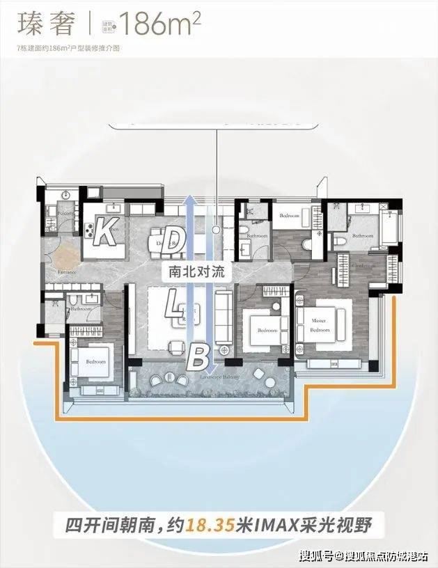 :正南向户型,一线花地湾河涌景观视野绝佳。全明四开间朝南,约 18.3 米极致奢幕视野,LDKB 洄游路线搭配超 80m² 多功能巨幕宽厅,空间开阔且灵动。多功能岛台与精致展示柜提升生活品质,超 40m² 端厅套房主卧,带来酒店总统套房般的享受,适合追求极致居住体验与尊贵感的高净值家庭。