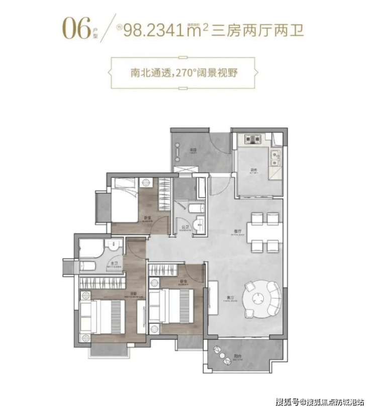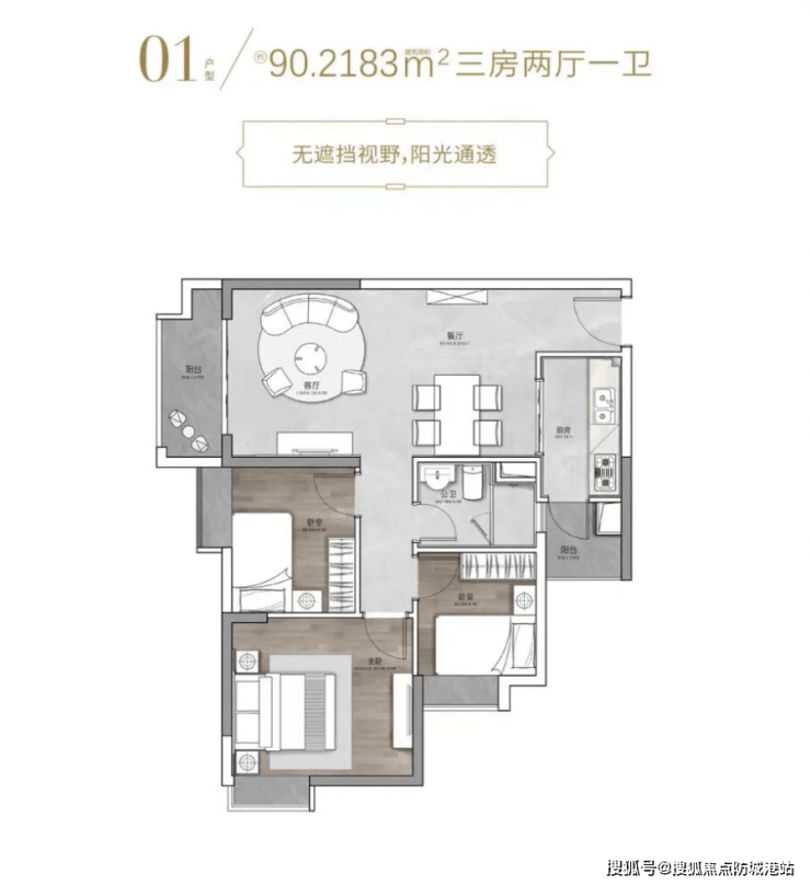 约90㎡至103㎡户型则多为三房设计,更适合三口之家或多人口家庭。此类户型通常采用动静分区布局,将客厅、餐厅等公共区域与卧室休息区域合理分离,从而提升居住私密性。部分户型还设计有观景阳台,使室内空间更加通透。