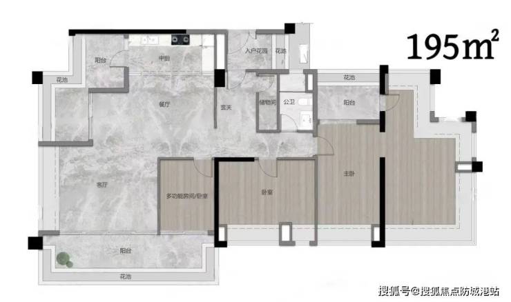 建面约195平的户型,阳台长度做到约8米,整个LDK客餐厅面积约达到70方,两侧观江面加起来更长达约16米!不夸张的说,整个LDK空间感堪比酒店的江景宴会厅!