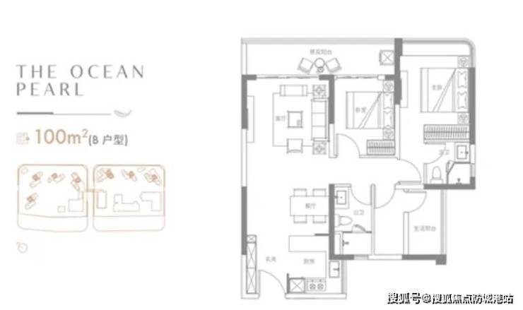 三开间望海:正东南朝向,6.3米宽景阳台连接客厅与次卧,270°飘窗设计,主卧、次卧、客厅直面狮子洋。