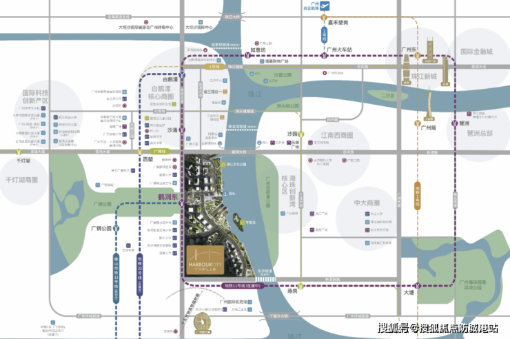 根据《广州市2025-2030国土空间规划》(穗府〔2025〕10号),白鹅潭板块定位为国际科创枢纽,规划面积6倍于珠江新城,政府投资超200亿元打造滨江经济带。项目距规划中的白鹅潭CBD核心仅2公里,未来将承接区域发展红利,成为广州滨江人居标杆。