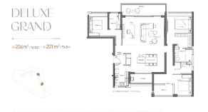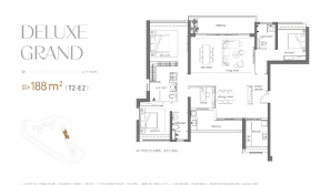 奢阔云山大宅:主打188平方米的一线云山大平层户型,三梯两户设计,四房两厅三卫布局,拥有6.5米大阳台、9米阔卓厅堂以及近55平方米的餐厅,彰显贵族风范。