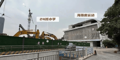 教育配套优势突出,项目配套 24 班小学,确定引入广州五中教育集团进行管理,教育资源实力强劲(具体入读政策以当年教育局公布为准)。目前学校选址已启动施工,挖机已进驻现场,建设进度稳步推进。周边还分布着广州五中东晓学校、九十七中学金碧校区等省一级学校,形成完善的 K12 全龄教育矩阵,为业主子女提供丰富的优质教育选择,教育确定性高。