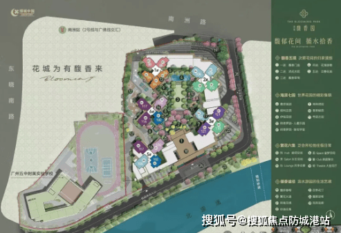 社区配套设施兼具颜值与实用性,打造 “城市桃源” 式居住体验。入口处设置馥香门庭,花瓣圆柱造型、范思哲黑石立柱、铂金钻奢石底座,彰显尊贵归家仪式感。风雨连廊连接各楼栋,形成廊下游园归家动线,雨天不湿鞋,夏天不晒黑,适配广州多变的天气。社区园林以 “馥郁芬芳” 为主题,流花水院借鉴东京虹夕诺雅酒店风格,打造叠水式瀑布景观;种植造型朴树、精品紫花风铃木、黄皮、鸡蛋花等多种植物,从叶香、花香到果香,营造沉浸式芬芳体验。