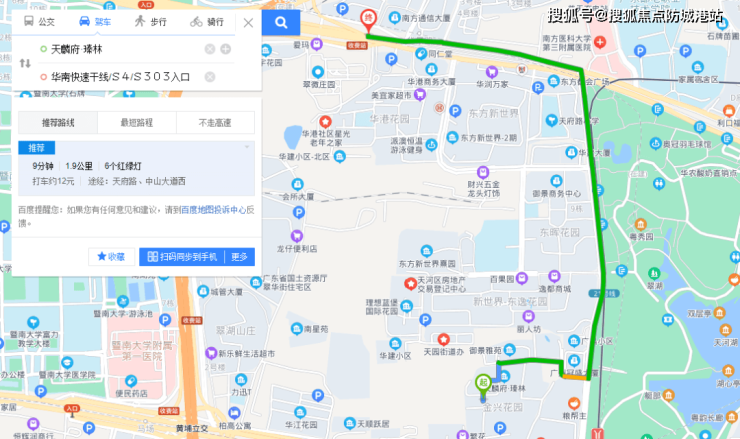 自驾:小区停车场至华南快速干线入口的距离大约是1.9公里,10分钟左右能上高速,非常方便。