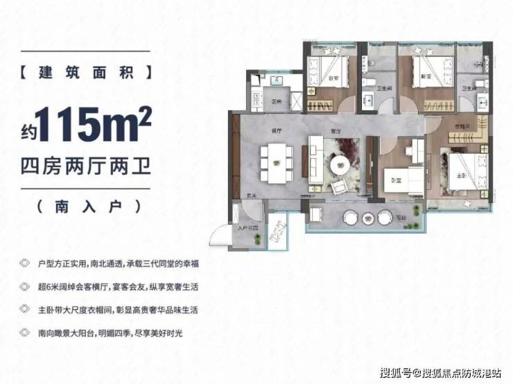 作为项目的旗舰户型,142㎡的四房两厅两卫(或三卫)产品,代表了能建·湾区金融城的最高居住标准。宽敞的尺度、奢适的布局,只为塔尖人群打造。