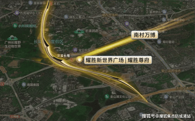 耀胜新世界雄踞番禺汉溪大道与汉兴西路交汇处,正位于长隆—万博商圈的核心腹地。这一片区不仅是广州五大世界级地标商圈之一,更是广佛莞都市圈的几何中心。项目距地铁3号线、7号线及佛莞城际三线换乘的汉溪长隆站仅约300米,高德地图实测步行仅需4分钟,真正实现“地铁上盖”生活。
