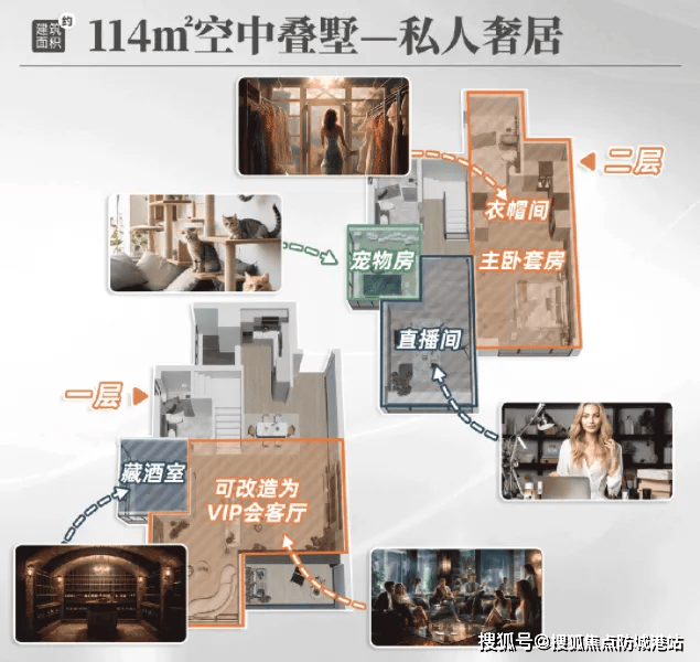 复式产品则为追求个性与尺度的买家提供了更高阶选择。110-120㎡的合规真复式(2018年报建,非违建)得房率突破120%,上下两层独立动线,功能分区明确。以114㎡为例,下层38㎡客餐厅+6.8㎡超大阳台,上层18㎡主卧套房,动静分离,私密性强。120㎡咬合复式更拥有10.5米南向面宽、3.8米挑高客厅及双层景观阳台,主卧270°飘窗带来4.5米采光面,尽显大宅气度。目前复式房源仅余少量,去化速度迅猛。