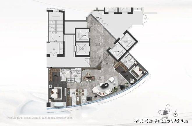 【D户型】⭐️“观·天赢”建面约:357㎡,三室两厅四卫