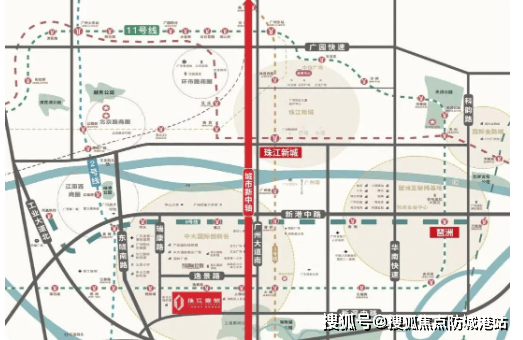 地理位置:项目位于广州市海珠区中大板块核心区域,坐落于2000亿中大商圈之核,地处广州商业黄金三角(珠江新城、琶洲、中大商圈)核心位置,紧邻中大国际创新谷,周边汇聚科研、商务、商业等多重优质资源,地理位置得天独厚,是海珠区城芯不可复制的优质地块。附近交通状况:项目为地铁11号线逸景路站正上盖,负一层与地铁站直接联通,实现“出地铁即到家”的便捷体验。地铁11号线作为广州首条环线地铁,已经正式通车,串联天河、越秀、荔湾、海珠、白云五大中心区,串联广州十大专业市场,5站直达珠江新城,5站直达琶洲,10分钟可达客村、江南西等核心商圈,日常通勤、商务出行、休闲购物极为便捷。除了地铁之外,项目周边路网密集,临近广州大道南、新港西路等城市主干道,可快速通达全城各区域;周边公交线路众多,多个公交站点环绕,覆盖多条公交线路,满足不同人群的出行需求,无论是选择公共交通还是自驾出行,都能实现高效便捷。