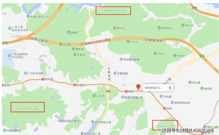 毗邻火炉山、天鹿湖森林公园、梅花岭/尖峰岭公园及科学城体育公园,社区南侧河流与山体环绕,视野开阔。