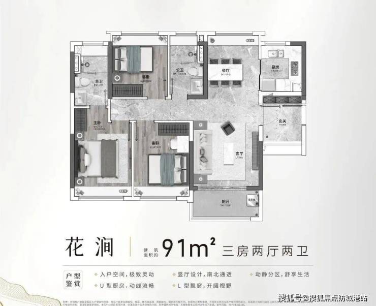 比如91平的四开间朝南+U型厨房;106平三房及四房都有大阳台,整体采光和实用空间都算出色。