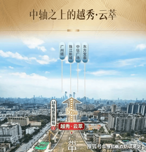 越秀云萃位于广州市中心的黄金位置,距离珠江新城仅5公里,自驾可通过广州大道或沙太路快速到达珠江新城CBD。项目是双地铁项目,家门口即为18号线京溪路站,可直达琶洲、珠江新城、天河北和万博等重要商圈。步行约800-900米可达3号线梅花园站,进一步提升了出行便利性。