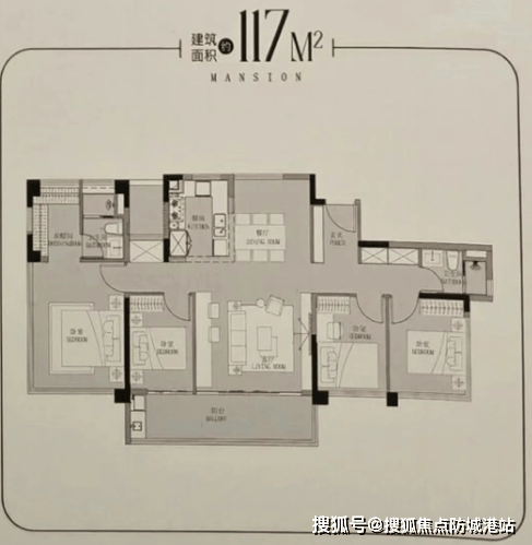 建面约117平方米全广稀缺新品:五开间朝南,约17.5米南向巨幅面宽,南北通透,LDKB式设计,超高得房率。