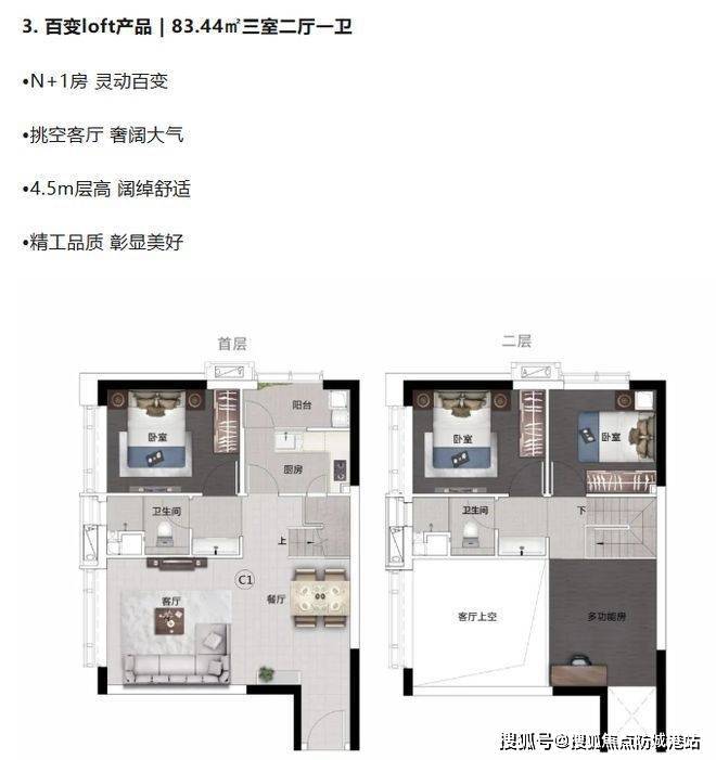 项目首推的户型产品独具特色,涵盖约 25 - 92㎡轻奢平层公寓和约 45 - 95㎡百变 LOFT 产品。轻奢平层公寓 44㎡一室一厅一卫户型,入户玄关设计,营造私享生活空间;全明设计搭配奢阔飘窗,采光通透,舒适奢阔,彰显国企精工品质。59㎡一室二厅一卫户型,卧连阳台,盛景入室;独立卧室隔绝油烟,独立卫浴干湿分离,同样展现精工品质。百变 LOFT 产品 83.44㎡三室二厅一卫户型,N + 1 房灵动百变,挑空客厅奢阔大气,4.5m 层高营造阔绰舒适的居住感受,整体户型设计注重空间利用与居住体验,为业主打造宜商宜居的灵动空间,满足不同需求。