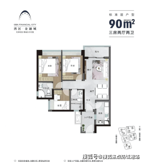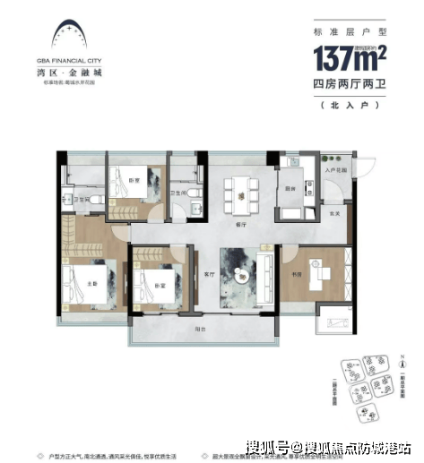 目前,能建·湾区金融城主要在售的是二期产品,包括7地块和9地块。户型涵盖88-135平方米的3至4房单位,设计精巧实用,空间利用率高。其中,88平方米的3+1室户型尤为抢眼,不仅拥有四房带主套的设计,更以其小巧精致的特点吸引了众多年轻家庭的关注。而135平方米的4+1室户型则更加宽敞豪华,适合追求高品质生活的家庭。