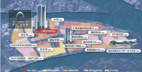 能建·湾区金融城位于广州市南沙区横沥镇凤凰二桥与横沥路交界处,紧邻地铁18号线横沥站D出口,仅约80米的距离。该项目由广州葛城实业有限公司开发,是中能建城市投资发展有限公司旗下的实力之作。总占地13.92万平方米,建筑面积达62万平方米,分五期开发,规划有5000户住宅单位,成为横沥岛最大的居住社区之一。