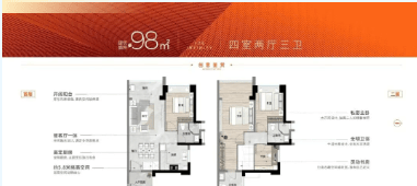项目推出的复式户型设计,以98㎡至107㎡的面积,实现了高达130%的使用率。通过十字排布的设计,保证了每户的采光通风及私密性。同时,户型的空间布局灵活,能够根据不同的家庭结构和需求进行调整,无论是四房还是六房,都能得到很好的满足,为家庭的成长预留了充足的空间。