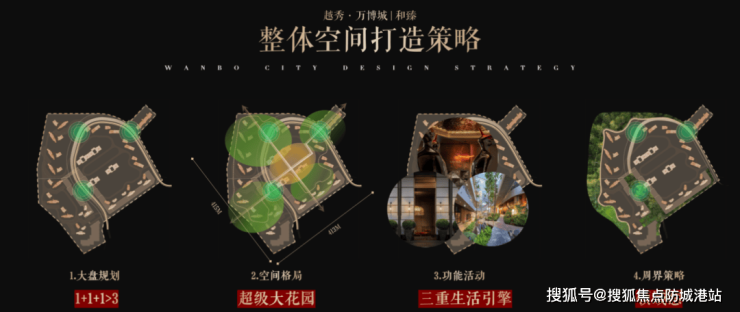 越秀·万博城|和臻突破性地通过社区地面的无明显物理界限和下穿环路的设计,将三大地块统筹规划、整合开发,形成一个完整的大型社区,三大地块配套、园林与居住氛围高度共融共享,带来1+1+1>3的效果。