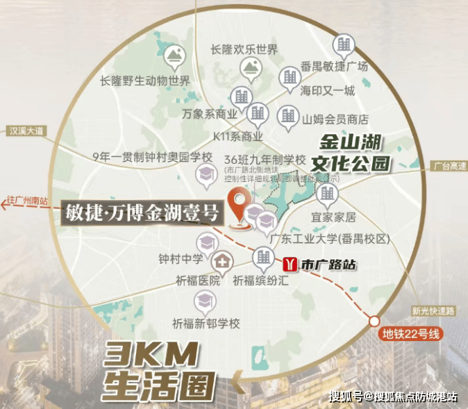 在公共交通方面,敏捷万博金湖壹号离22号线市广路站约1公里,步行15分钟左右可达。22号线与3/7/18号线衔接,8分钟一站转至番禺广场,方便通勤万博CBD及珠金琶等地。自驾方面,靠近金山大道、汉溪大道等,连通新光快速、广台高速。前往万博或长隆,路线选择多样,但上下班高峰期易堵车,需预留足够时间。总体而言,该盘交通可满足通勤需求,但需合理规划出行时间。