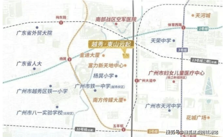 越秀·東山云起位于越秀区东山板块,广州大道中地段,周边配套成熟。项目距离5号线杨箕站约700米,未来10号线广州大道中站距项目约400米,便捷接驳CBD及老城各主要区域。自驾出行亦十分便利,可快速抵达天河北、荔湾及海珠区域。项目地处核心板块,兼具老城区生活气息与CBD现代资源,满足居住者通勤、购物、娱乐及商务需求。交通优势与核心区稀缺性共同提升了住宅的投资价值和居住舒适度。