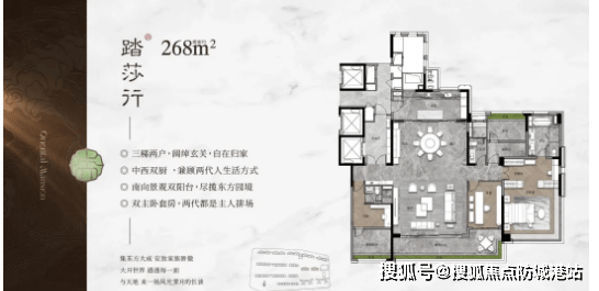 旗舰级268㎡大户型堪称豪宅标杆,采用3T2户设计,配备独立保姆电梯与保姆房,业主独梯入户,实现动线分离,保障私密性与舒适度。户型拥有近120平LDKG大方厅,融合厨房、餐厅、客厅与阳台,形成超大一体化空间,南北对流设计让室内清风流转,无论是家庭聚会还是日常起居,都尽显阔绰尺度。