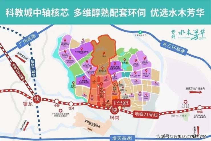 保利水木芳华占位华南首个科教高地 —— 广州科教城,区域规划 14.47 平方公里,总投资 1800 亿,未来将汇聚超 30 万师生与 3 万高精尖人才。项目距离地铁 21 号线凤岗站仅 800 米,快线 2 站到科学城,4 站到智慧城,1 站接驳镇龙站换乘穗深城际、新白广城际,畅达白云机场、东莞、深圳;广汕公路、新新快速、广园快速等主干道环绕,15 分钟接入北三环、增天高速等高速路网,轻松融入大湾区 1 小时生活圈。随着科教城产业与人口持续导入,地段价值与日俱增,成为刚需置业的潜力之选。
