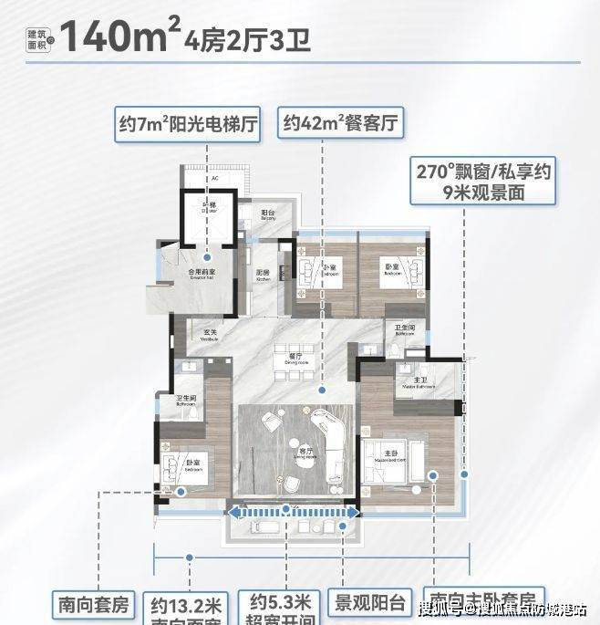 户型设计亮点满满。项目分南北地块,共 25 栋 45 - 52 米低密度小高层,“前低后高” 梯级跌落设计,尽享湖景。户型为建筑新规后产品,使用率超高。板楼设计,2 梯 2 户,近似 1 梯 1 户,私密性好。采用 LDKG 一体化设计,空间宽敞通透,减少承重墙,布局灵动。窗地比高达 38%,主卧 270° 大飘窗,采光观景极佳。如建面约 140㎡户型双主套、南北双阳台;建面约 190㎡户型南向面宽约 17 米;建面约 250㎡户型奢阔层高,一线观湖,满足不同改善需求。