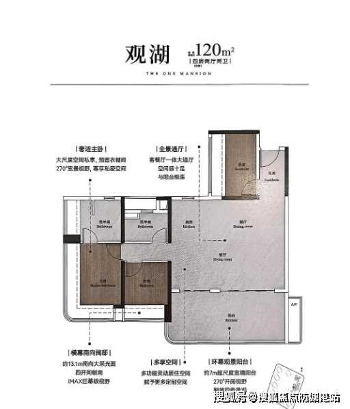 149㎡四房:顶配改善户型,270°全景飘窗直面金山湖与万博天际线,主卧预留步入式衣帽间,客餐厅开阔大气,高楼层可享无遮挡视野,居住体验更上一层楼。