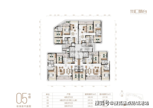 项目整体户型概况:项目由14栋12层小高层组成,小高层设计兼顾采光与视野,避免高层居住的压抑感,同时保障居住私密性;产品涵盖123-352㎡三至五房,共8类户型,官方在售面积标注为124~290m²(不同户型备案面积略有差异),户型实用率约82-84%,高于广州多数豪宅项目,空间利用率高,无浪费空间,充分满足业主的居住需求。