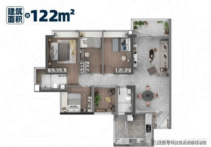 140-170㎡户型:配备多功能可变房型系统,适合大家庭居住需求。