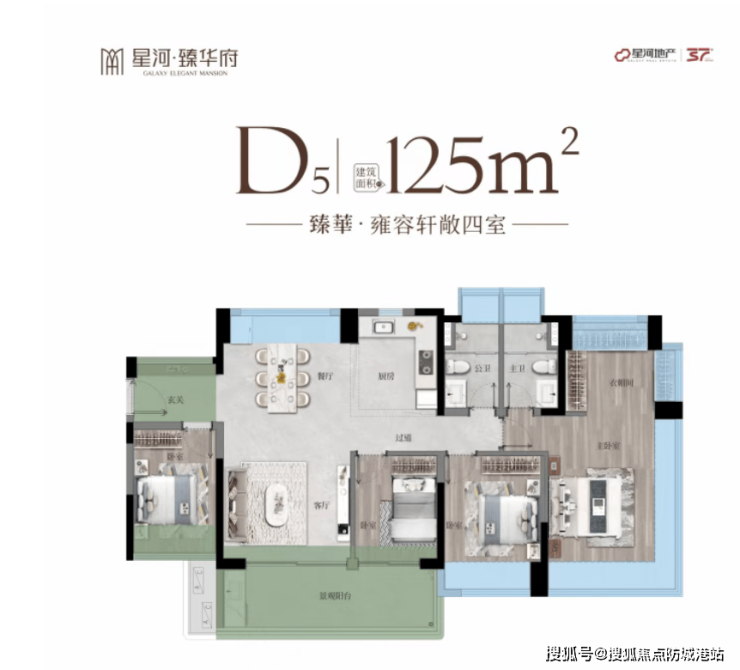 4. 建面约125㎡四室:奢华尺度,迎宾入户花园