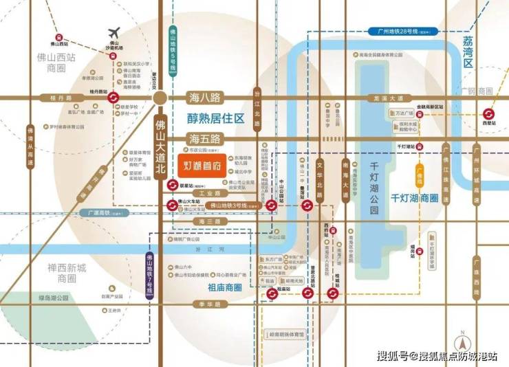 城北区域为中轴北门户,衔接祖庙南海黄金地段,根据规划利好,配置佛山3号线(在建)/5号线(规划)/7号线(规划);广州28号线(规划),城北区域价值腾飞。