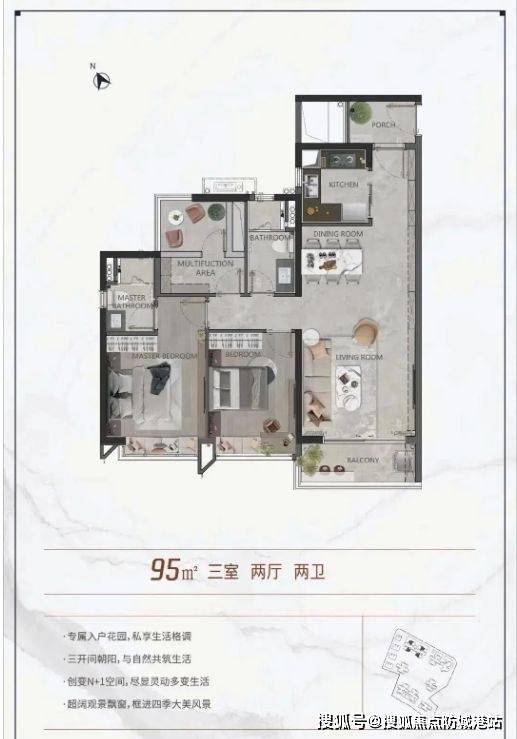 主力户型注重功能分区与采光通风。以95平方米三房为例,实现南北通透、动静分离;130–140平方米四房则配置双阳台、主卧套房及灵活多功能空间,兼顾实用性与舒适度。230平方米大平层产品面向高端客群,强调景观视野与私密性,部分单元可瞰江望园。所有户型均采用高窗地比设计,最大化引入自然光线与外部景观。