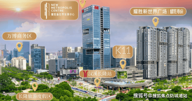 在房地产价值的评估体系中,地段永远是第一要素。耀胜新世界所处的位置,堪称广州南部的“心脏”地带。这里不仅是番禺区的发展引擎,更是整个广州向南拓展的战略支点。项目位于长隆旅游度假区与万博中央商务区两大顶级商圈的交汇点,这种“双核驱动”的格局,在广州乃至整个大湾区都极为罕见。长隆板块以其世界级的文旅资源,每年吸引数千万游客,带来了巨大的人流、物流和资金流,形成了独特的文旅经济生态圈。而万博商圈,作为广州南部唯一的国家级中央商务区,汇聚了众多世界五百强企业总部、高端写字楼以及大型商业综合体,是广州经济发展的新增长极。