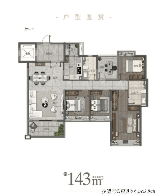 五期天岚组团由2栋联排湖景叠墅、5栋9层小高层洋房及2栋33层高层洋房组成。目前,湖景叠墅已全部售罄,市场焦点集中于小高层与高层洋房产品。项目主力户型涵盖97㎡三房、117㎡四房、128㎡四房以及143㎡五房,面积梯度合理,既能满足年轻家庭的首置或改善需求,也能承载多代同堂的大家族生活场景。