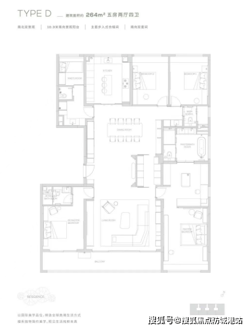 目前在售产品以145㎡三房、168㎡四房为主力。其中168㎡“四叶草”户型尤为典型:四间卧室分列四方,互不干扰;主卧带独立衣帽间与双台盆卫浴;厨房采用U型操作台,预留中西厨结合可能;阳台进深超2米,可灵活改造为茶室或亲子活动角。虽然该户型未完全对标最新规范(如145㎡仅设三房),但其动静分区清晰、公区开敞,符合多数改善家庭对功能性的核心诉求。项目同步搭载M+科技系统,在新风、净水、智能安防等维度做了基础配置,提升日常居住的健康指数。