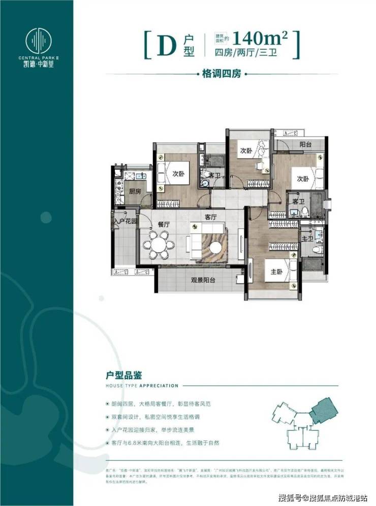 项目规划多样化户型,从舒适两房到大户型四房应有尽有,产品设计注重功能分区,南北通透,全景落地窗设计,通风采光俱佳。宽景阳台、独立厨房、干湿分离卫浴,兼顾生活舒适性与私密性。