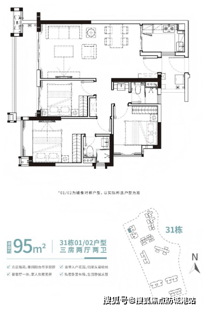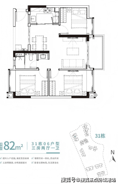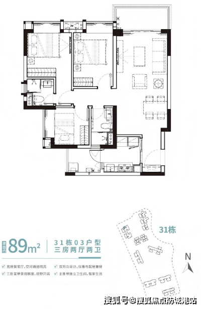 86㎡三房:南北通透,6米景观阳台,总价235万元起(市面同面积段普遍超300万元);