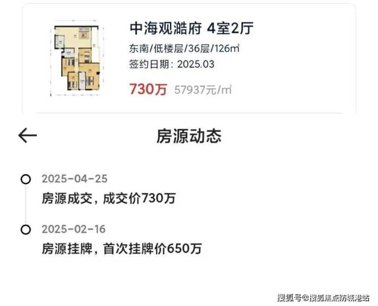 2025年3月,贝壳平台数据显示,首批二手房源成交单价5.79-5.9万/㎡,总价730-750万。值得关注的是,两套房源均出现“挂牌价低于成交价”的异常现象:一套126㎡低楼层单位挂牌价650万,最终成交价730万;另一套中间楼层单位挂牌期间涨价20万后成交。业内分析指出,此类现象可能与开发商工抵房操作、中介平台数据优化或特殊房源属性(如装修溢价)相关,购房者需谨慎核实交易真实性,避免被异常数据误导。