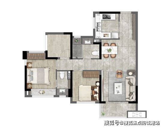 B 户型实现了 89 平享四房的创举,是全家庭自由成长户型的典范。同等面积下多一房的设计,为家庭未来的成长预留了充足空间,满足了不同阶段家庭结构变化的需求。四开间朝南,使得家中每一处空间都能充分享受阳光与清风,通风采光条件优越。主卧套房设计,配备独立卫生间和明亮飘窗,不仅保障了主人的私密性,还能带来舒适的居住体验,满足全功能需求。创意百变双孩房更是一大亮点,空间灵活可变,随时满足二胎家庭的需求,为孩子提供舒适的成长环境。